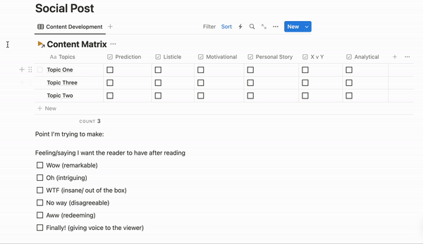 This is a notion template you can copy for yourself and start to use to create content and grow your following. Grab the system below!